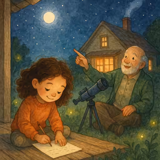 Güneş dağların ardına çekildiğinde, gökyüzü önce turuncuya, sonra mora, en sonunda da koyu laciverte büründü. Dedesi Cemil, verandaya eski bir teleskop taşıdı. Defne heyecanla yanına koştu.